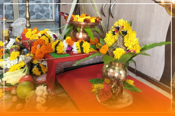 This Pooja is mainly done of Kalash with coconut on top of it.